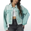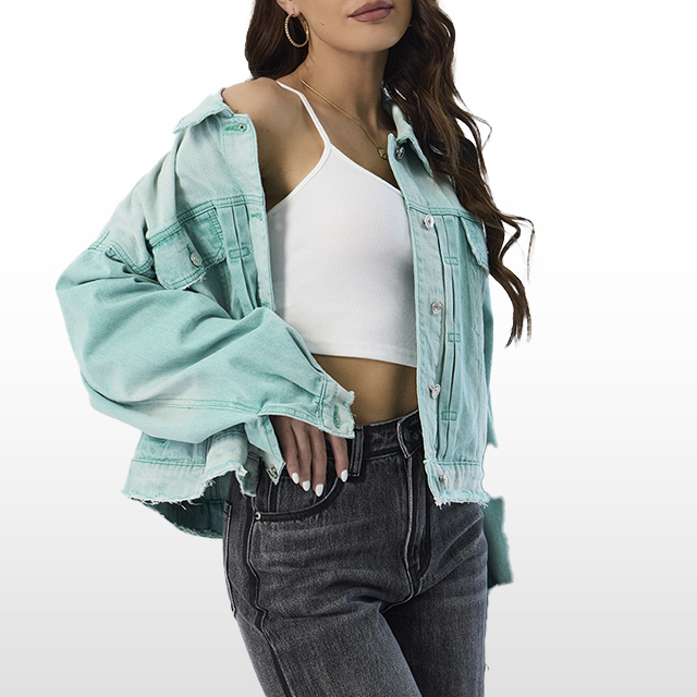This denim jackets feature a distinctive wash on the denim, creating a uniquely colorful denim texture that's both eye-catching and timeless keeping sleek and clean look.The refreshing mint-washed tone gives it a light, eye-catching look that instantly elevates any outfit.