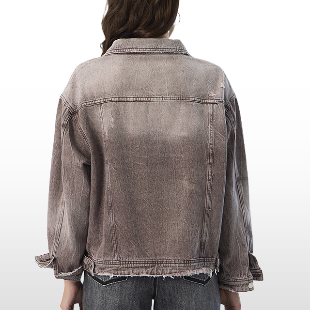 This design can also be produced in bulk, making it a great option for retailers seeking trendy yet high-quality pieces. Whether for individual orders or large-scale production, Guangzhou Spring garments factory denim jackets like this one exemplify a commitment to quality craftsmanship and modern fashion.