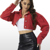 Guangzhou Spring garments factory proudly presents our new women's red loog sleeve china denim jacket, the epitome of this season's must-have style.